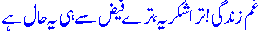Gham-e-zindagee tiraa shukriyah tire faiZ^ se hee yeh Haal hai 92.