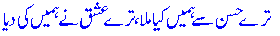 Husn i'rfaan-e-Haqeeqat ke siwaa kuch` bh`ee naheeN 94.