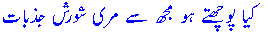 kyaa pooch`te ho mujh` se miree shorish-e-jazbaat? 332.