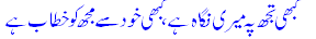 kabh`ee tujh`peh meree nigaah hai, kabh`ee Khud se mujh` ko Khit^aab hai 61.