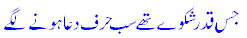 jis qadar shikwe th`e sab Harf-e-du,a'a hone lage 68.