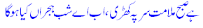 hai SubH-e-malaamat sar peh khaRee, ab ai shab-e-hijraaN kyaa ho gaa 3.