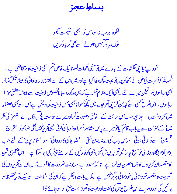 Read opinion of some of the poets on Sarwar's poetry. (Note: More opinions available under "Urdu" tab.)